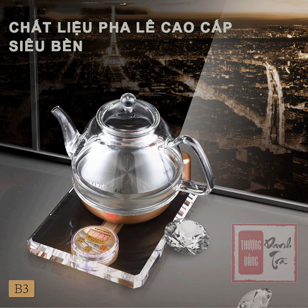 Đến từ thương hiệu KAMJOVE - công ty chuyên sản xuất các sản phẩm trà cụ nổi tiếng Trung Quốc, Bếp đun trà điện Kamjove B3 với công nghệ chống ồn, tự động bơm nước, tự động đun sau khi đầy, chức năng giữ nhiệt ở nhiệt độ cố định kèm chất liệu thủy tinh pha lê có độ tinh khiết cao đem đến trải nghiệm chưa từng có về dòng sản phẩm đẹp, sang trọng nhất thị trường hiện nay. Bộ ấm pha trà bằng điện chỉ cần nhấn nút và mọi chuyện hoàn toàn tự động từ việc nước hút từ bình, đến khi đầy tự động ngắt. được nhập chính hãng, bảo hành 1 năm.