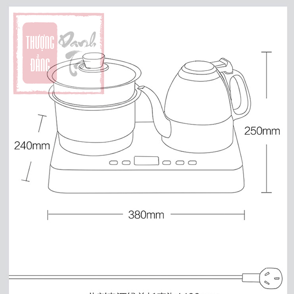 – Phụ kiện đi kèm: Bộ điện, siêu đun nước, nồi luộc chén, ống dẫn nước, điều kiển từ xa thông minh nhiều chức năng.