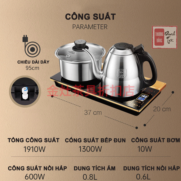 - Công suất tổng: 1910 W, đun nước siêu nhanh