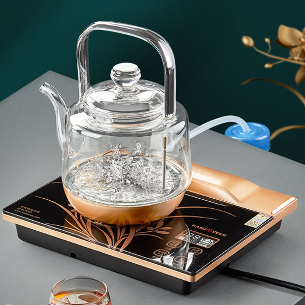 Bếp đun điện tự động thông minh Kamjove phong cách trà đạo ngày càng được sử dụng rộng rãi trong đời sống và trong phòng trà bởi các tính năng thông minh vượt trội. Mọi thao tác từ lấy nước, đun nước đều được thực hiện chỉ với 1 thao tác. Với bộ bếp đun nước pha trà điện thì chỉ cần nhấn nút và mọi chuyện hoàn toàn tự động từ việc nước hút từ bình, đến khi đầy tự động ngắt .Bạn không cần lo lắng nước bị trà ra ngoài. Trải nghiệm cảm giác tự động hóa thông minh hiện đại với vòi nước bơm tự động từ đáy ấm. Việc đun nước pha trà của bạn sẽ trở nên đơn giản hơn bao giờ hết. Việc nấu nước pha trà với bộ điện pha trà sẽ rất nhanh, chỉ mất 2-3 phút.