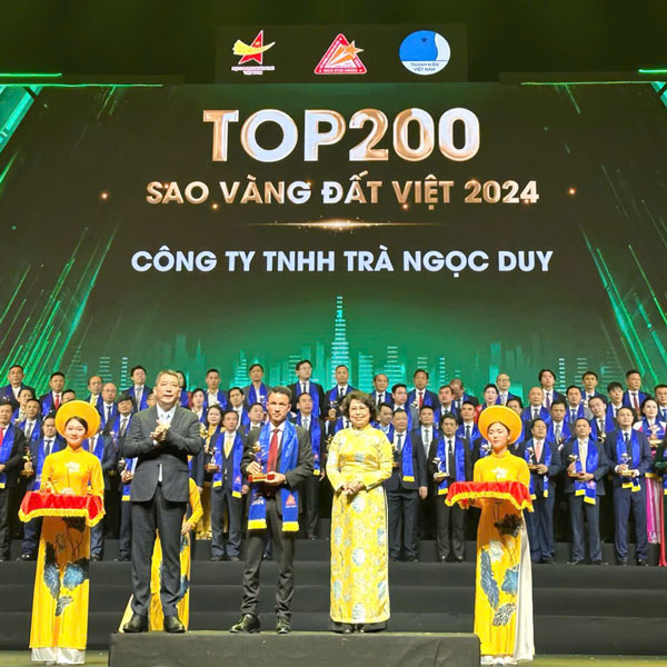 Công Ty TNHH Trà Ngọc Duy vinh dự nhận giải thưởng "Sao Vàng Đất Việt" năm 2024! Giải thưởng là sự ghi nhận xứng đáng cho những nỗ lực không ngừng nghỉ của công ty trong việc mang đến những sản phẩm trà chất lượng cao, giàu hương vị Việt. Với quy trình sản xuất nghiêm ngặt và cam kết về chất lượng, Trà Ngọc Duy không chỉ chiếm lĩnh thị trường trong nước mà còn vươn ra thế giới.