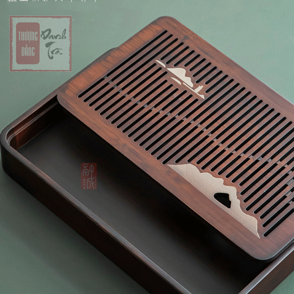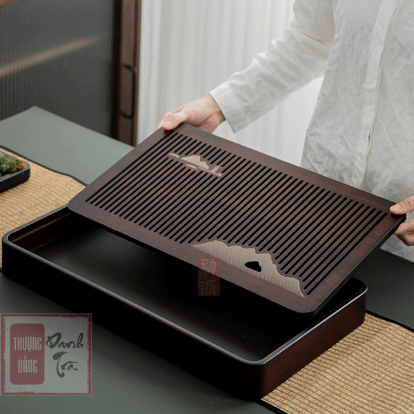 – Cấu tạo: Khay có các khe lọt ở bề mặt giúp dễ dàng thoát nước trà. Thiết kế âm dương, bên dưới có khay thu nước thừa tiện dụng và dễ dàng vệ sinh.